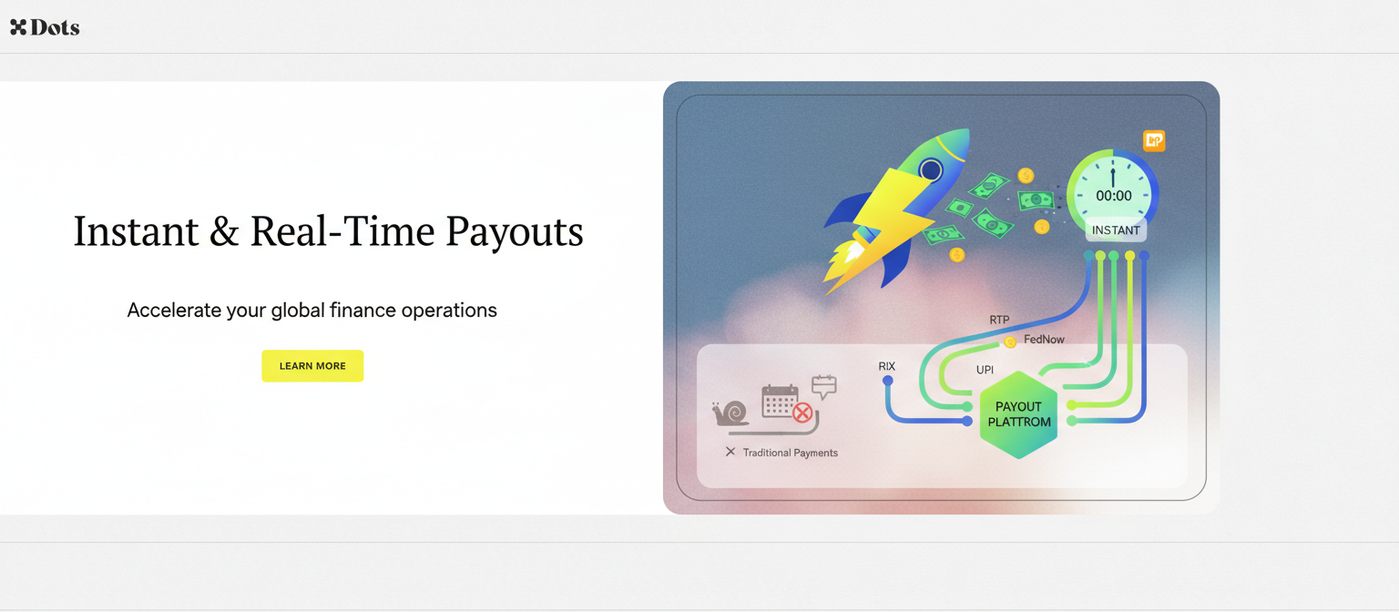 - Dots offers instant payouts across 300+ rails in 190+ countries with built-in tax automation